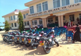 Mkuu wa Wilaya ya Uyui Zakaria Mwansasu amegawa pikipiki nane (8) kutoka Ofisi ya Rais -TAMISEMI ambazo zimetolewa kwa watendaji wa kata wa Halmashauri ya Wilaya Uyui mkoani Tabora.